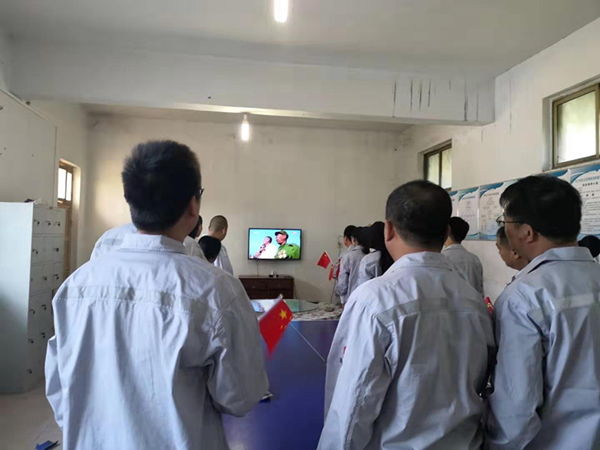 10月1日上午,馬村分公司及晉城澤州和陽城的相關人員在會議室共同觀看“中華人民共和國成立70周年大會、閱兵式和群眾游行”的現場直播,當國歌響起,國旗升起的那一刻,參會人員全部起立,懷著激動地心情,參與了升旗儀式。